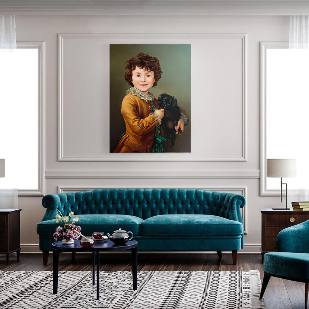 Looking for a unique gift? Show your love in a fun, yet meaningful way with a custom made portrait of 'The Boy With a Puppy'.